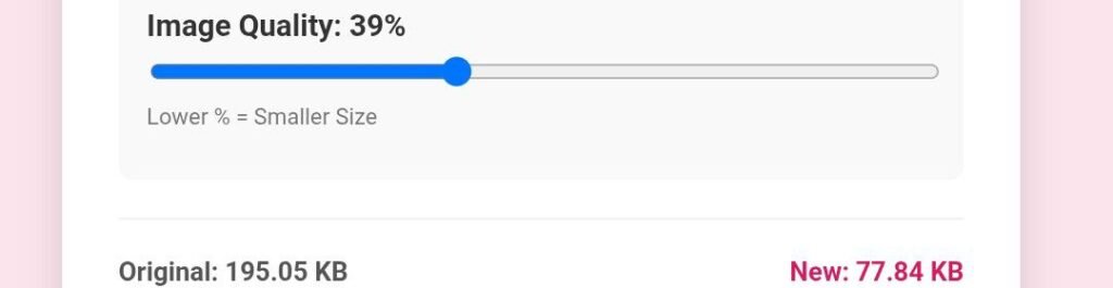फोटो अपलोड होने के बाद, आपको उसका पुराना साइज देखने को मिलेगा (जैसे 2MB)। अब आप अपनी जरूरत के हिसाब से टारगेट साइज (जैसे 50KB) सेट कर सकते हैं।